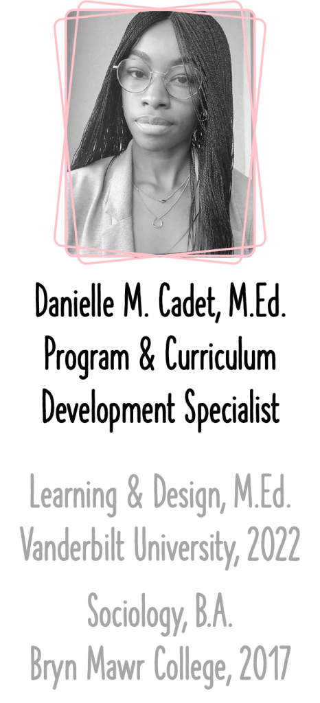 - The project also pushed me to think creatively about modes of lesson delivery. Considering that this curriculum is free for any interested educator, it was necessary to imagine experiencing this curriculum without prior training.